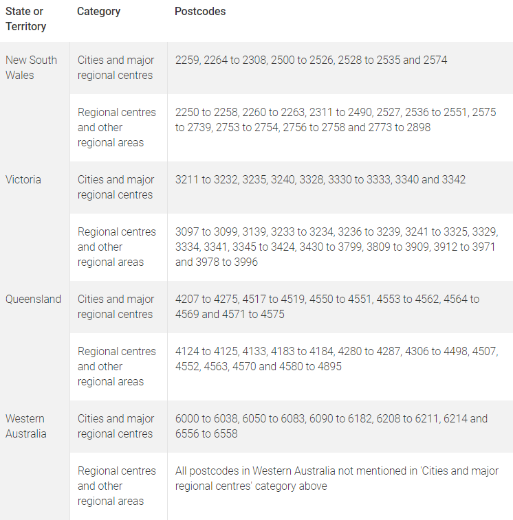 A:内政部已经决定了在澳洲的哪些地区有资格申请491签证。符合条件地区的邮政编码也已经公布在了内政部官网。【完整邮政编码在文末】