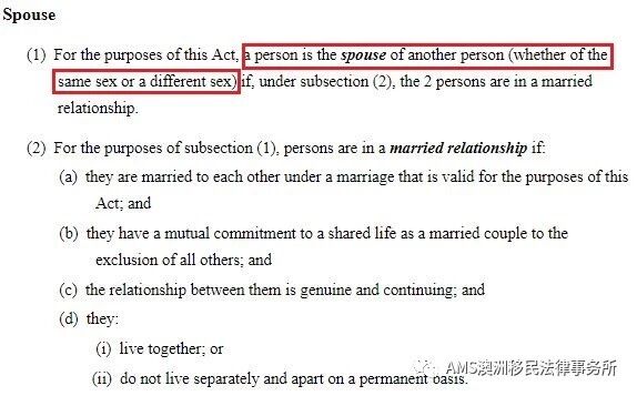 也就是说,只要你能证明这段配偶关系的真实性和持续性,在实际申请操作上,同性配偶移民在递交和审理的时候并不会被“特殊关照”,case officer更不会因为你的性别而有所刁难,毕竟这已经被明文规定在澳大利亚联邦法律条文之中。