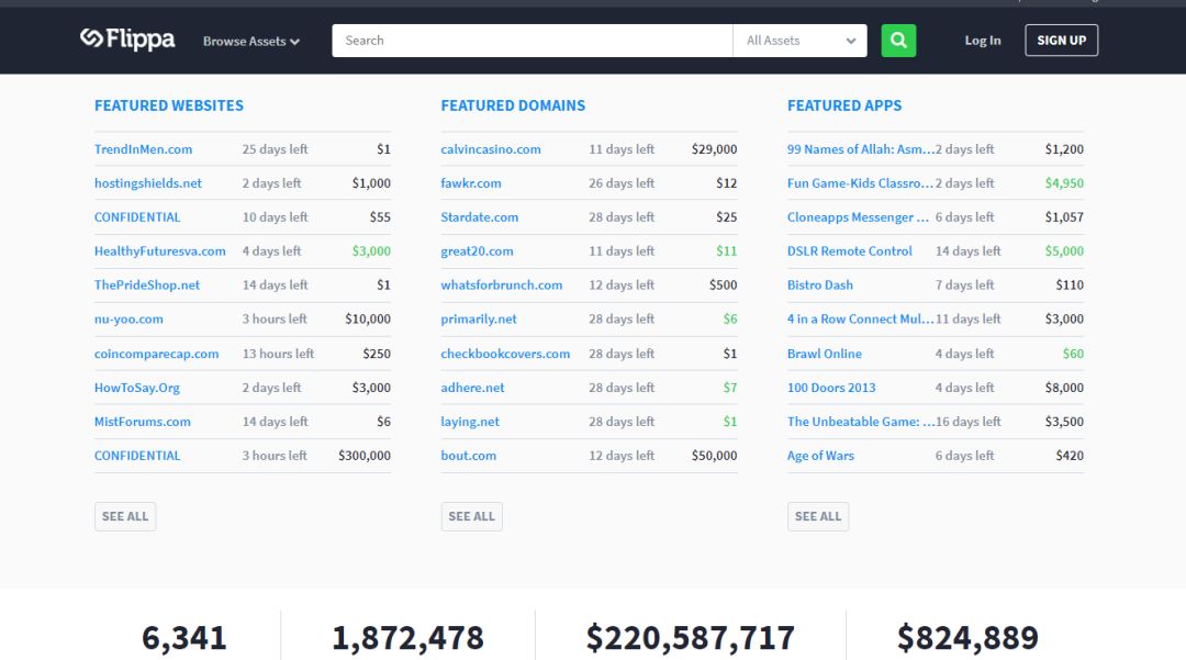 Flippa 买卖网站的网站